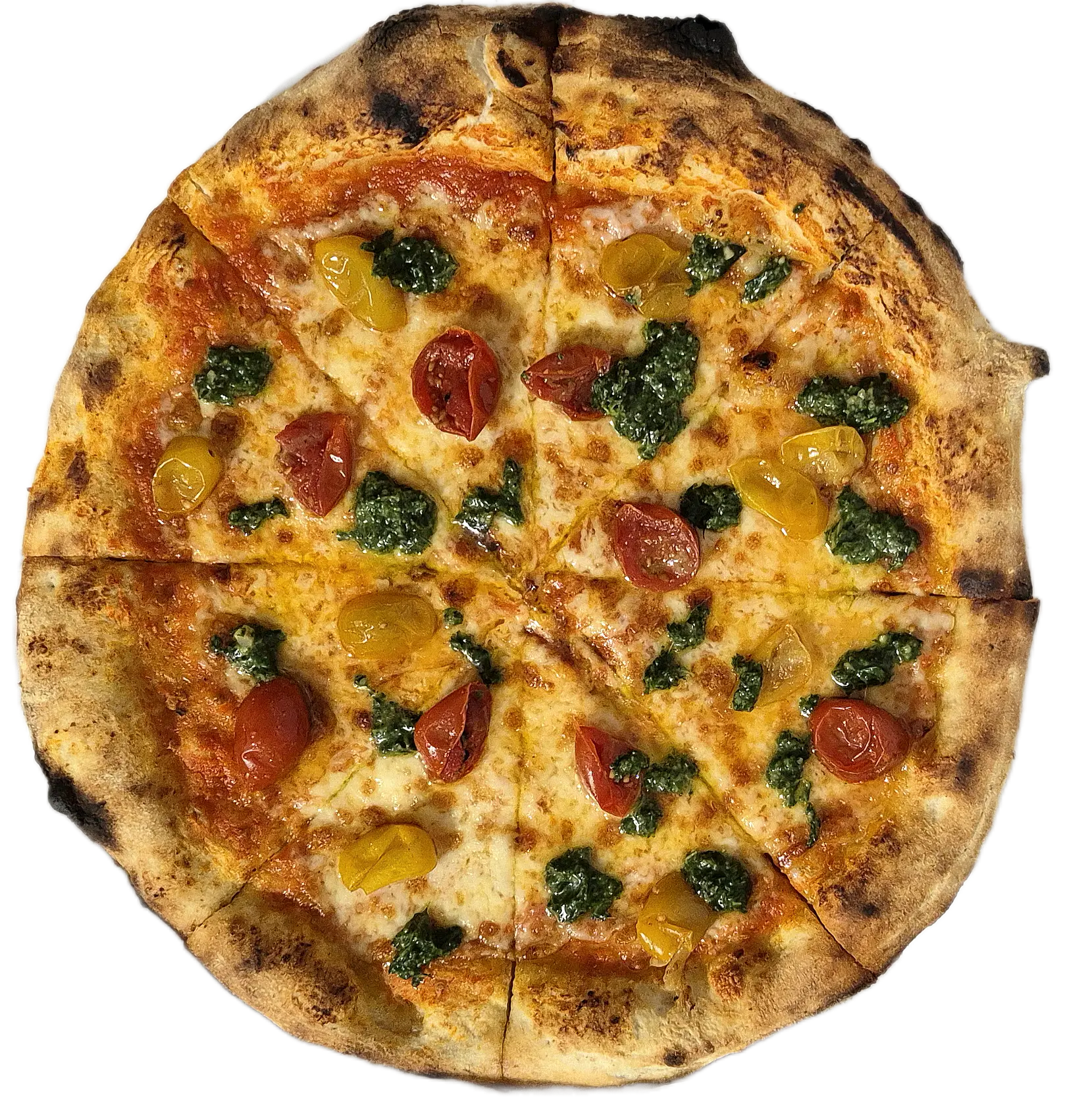 A pizza Margherita é um clássico napolitano criado em 1889 por Raffaele Esposito para homenagear a Rainha Margherita de Saboia. Ela simboliza a bandeira italiana com molho de tomate (vermelho), muçarela (branco) e manjericão fresco (verde). É uma pizza simples, focada na qualidade dos ingredientes e tradição. Destaca-se pelo equilíbrio entre a acidez do tomate, a cremosidade da muçarela e o aroma do manjericão.