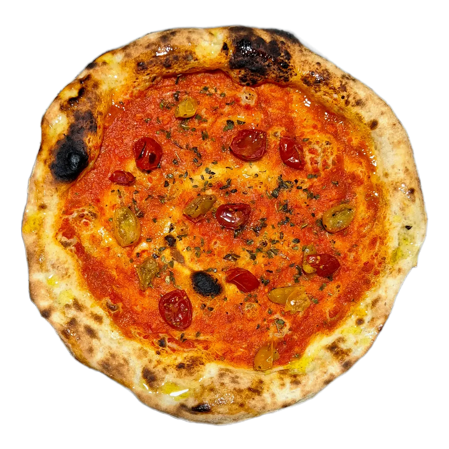 A pizza Marinara é um tradicional clássico napolitano, famosa pela simplicidade e sabor, composta por massa, molho de tomate, alho, orégano e azeite de oliva extra virgem. Originária de Nápoles, era a refeição dos marinheiros (“marinai”) que optavam por utilizar ingredientes baratos e de fácil conservação. É uma opção vegana.